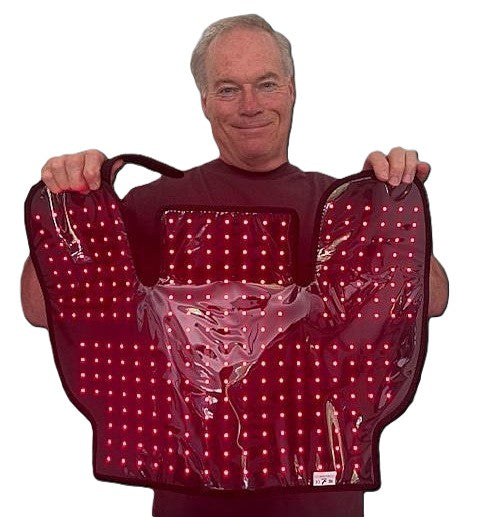 The LIGHTFORCE RED & NEAR INFRARED LED LIGHT THERAPY SHOULDERS & NECK WRAP is a powerful device. It has 288 dual chip LED diodes (288 Red 660nm and 288 Near Infrared 850nm) embedded in a flexible wrap with a Velcro strap. With its soft and high transmittance protective PVC cover, it is easy to clean.